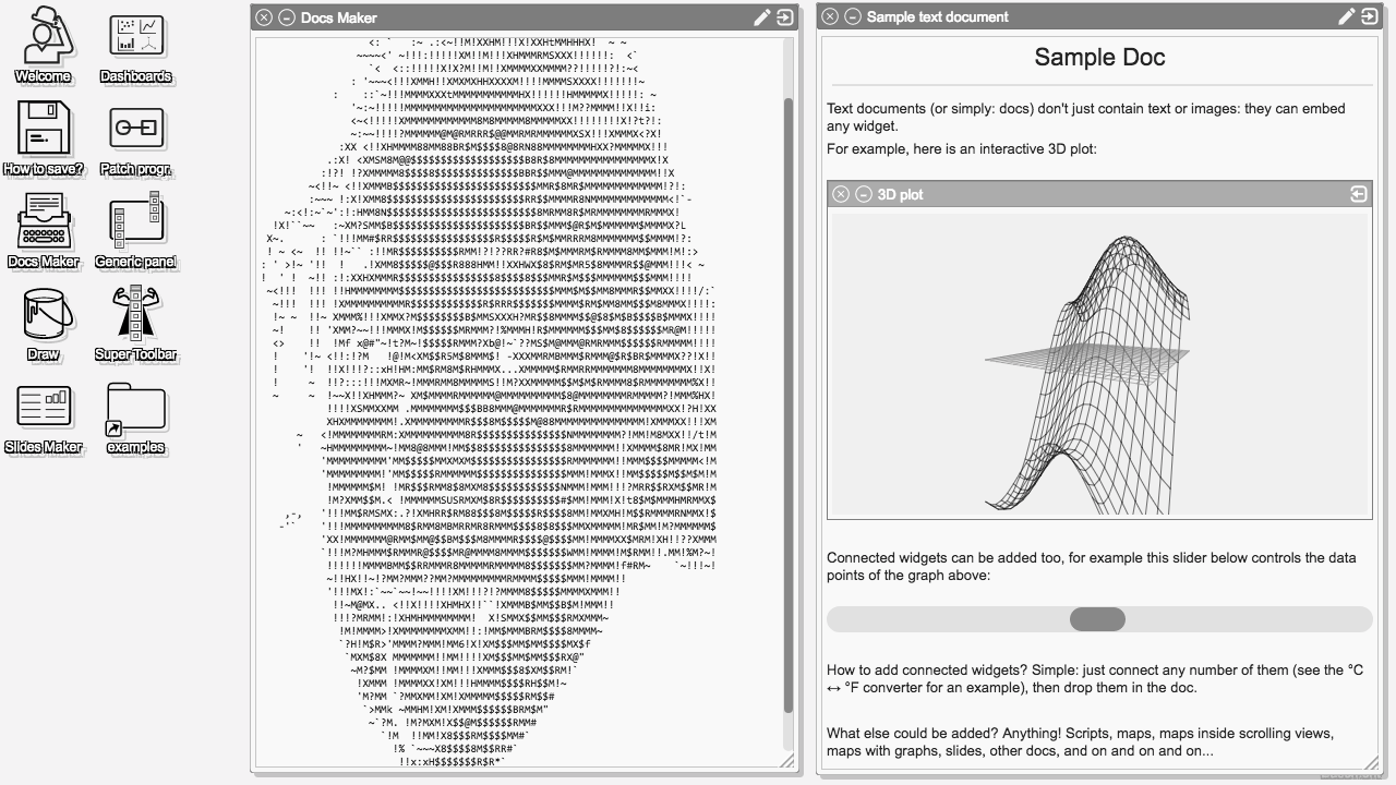 Fizzygum is a new web framework, an entire platform really, designed from the ground up to do complex things easily. Things like: live documents, complex apps, complex sets of apps, or even entire custom environments.
