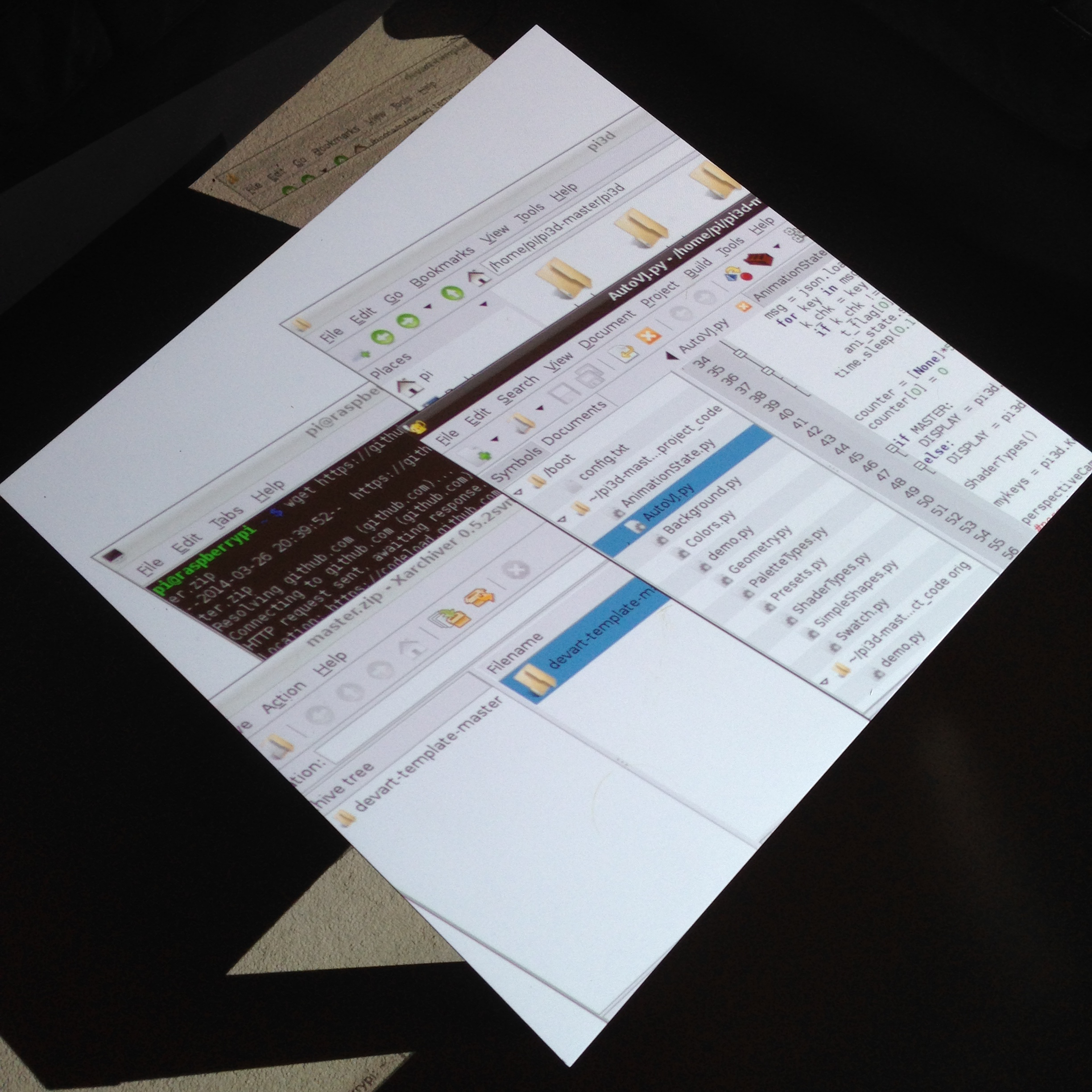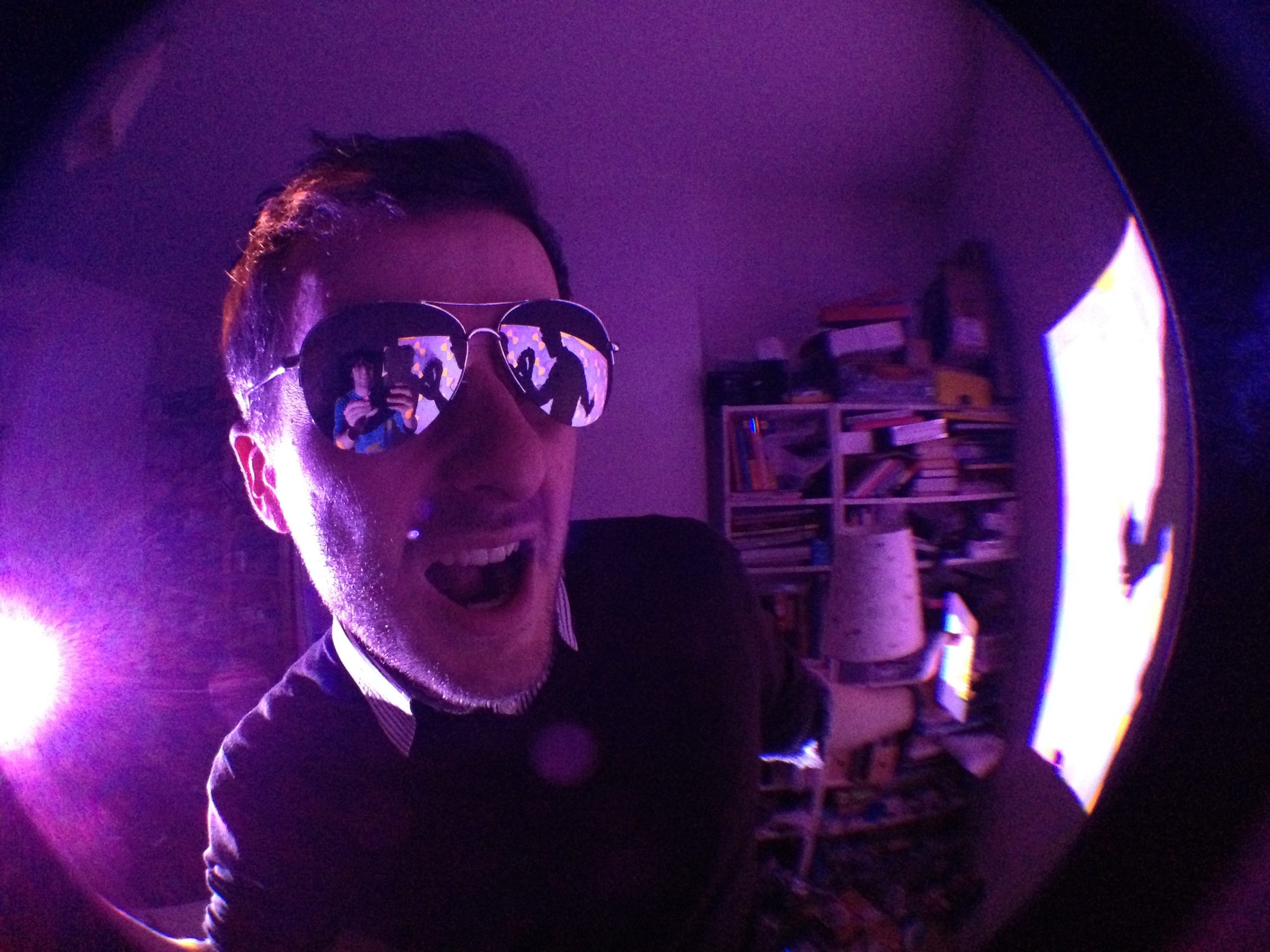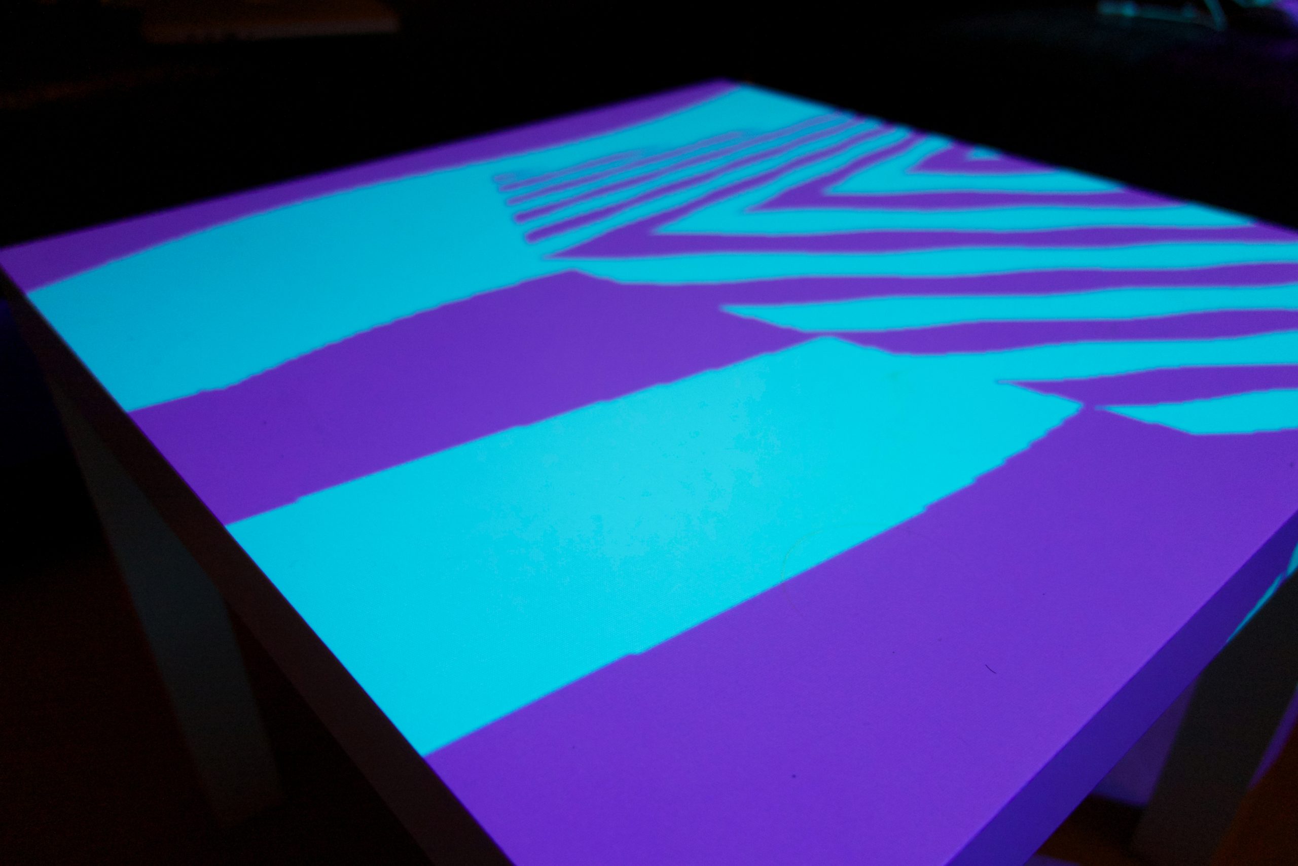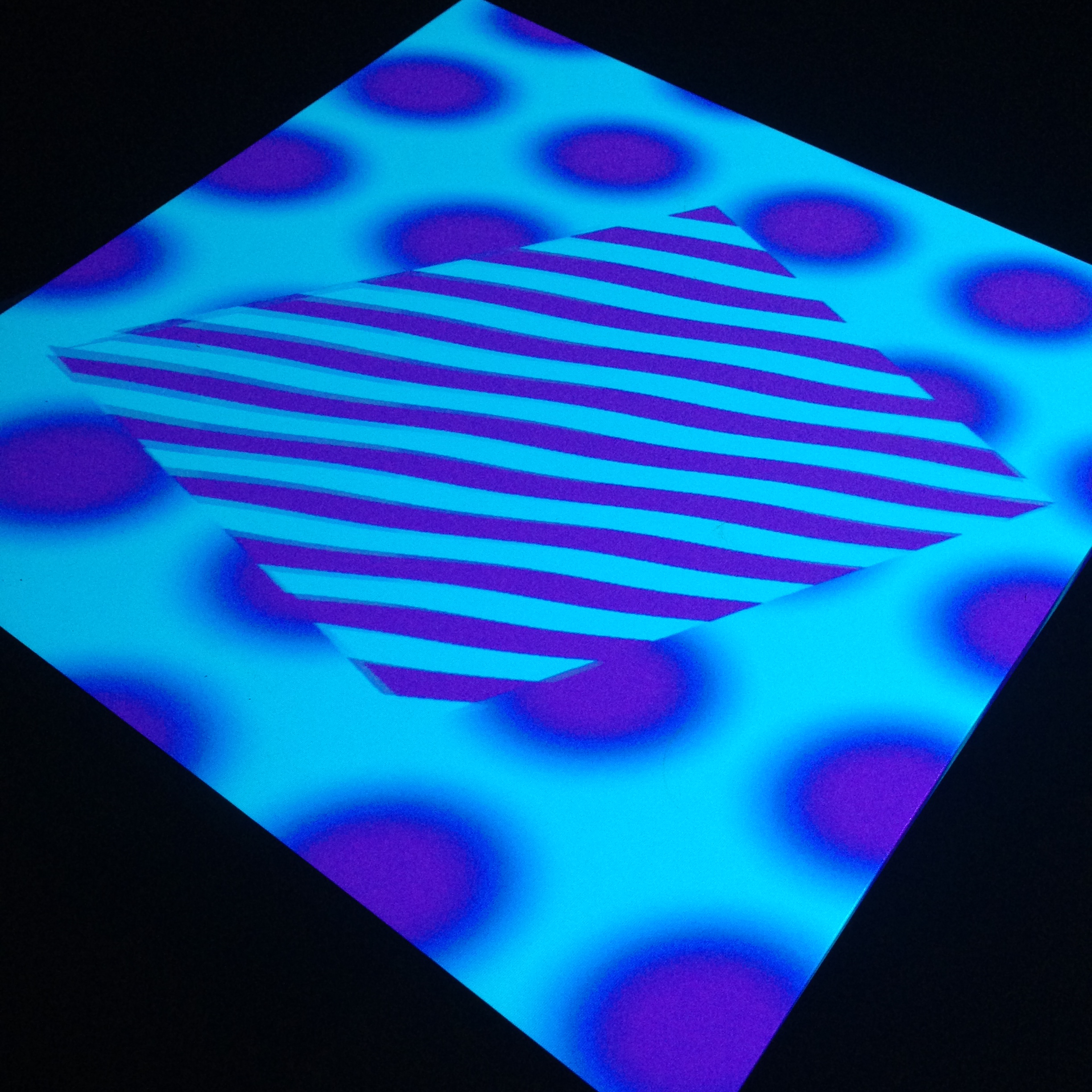 “Playful Geometries” is a nifty coloured and fun installation made by me and Patrick Gaunt (aka paddywwoof) consisting of interactive projections of 3d shapes and patterns. “Playful geometries” is a sound-reactive, multi-user, multi-screen and it scales from coffee-table personal living-room toy to hangar-size premiere-grand-opening scale. Interaction is based on ambient sound and by users tablets controlling the colors, shapes and animations, see presentation video below.