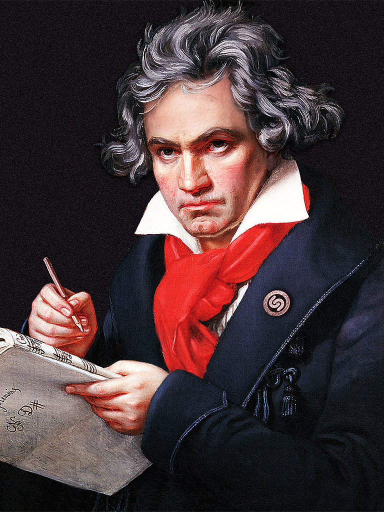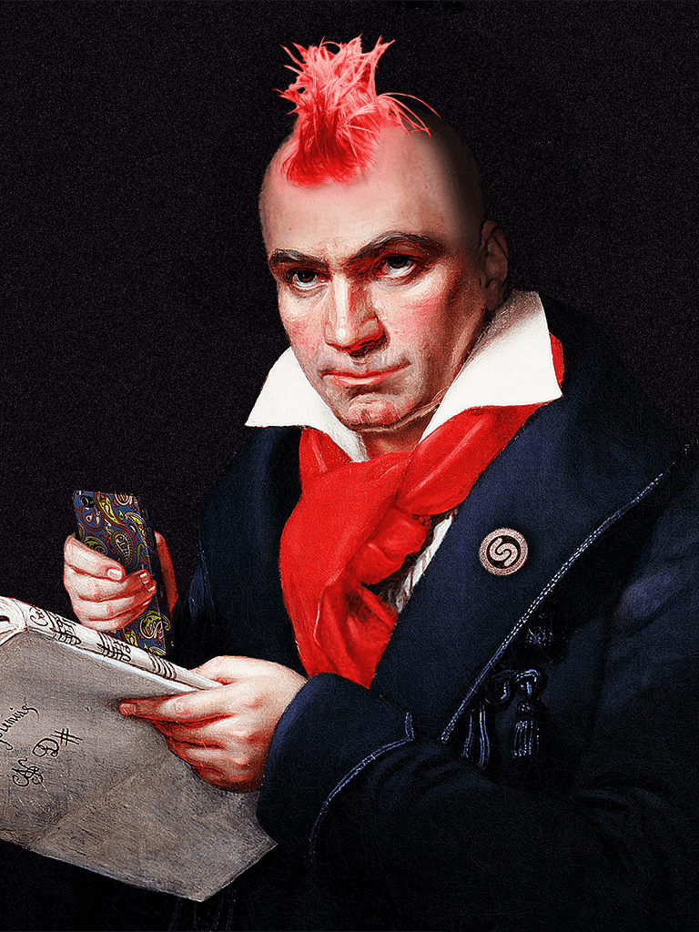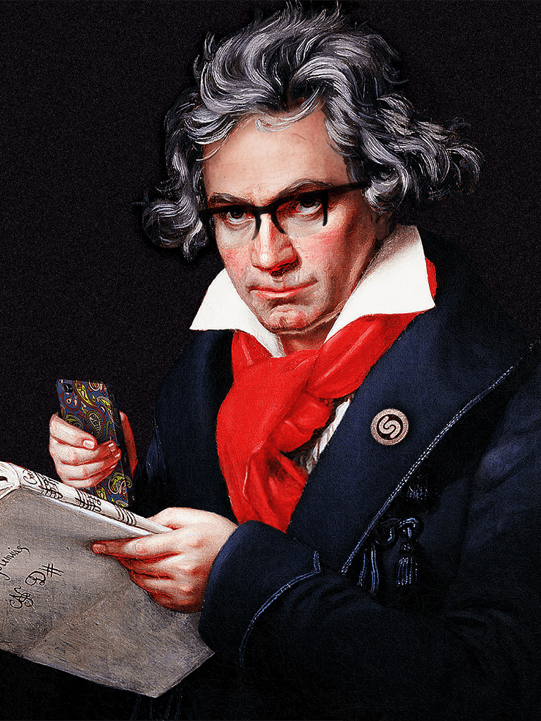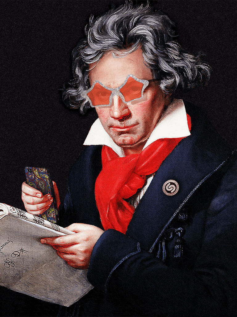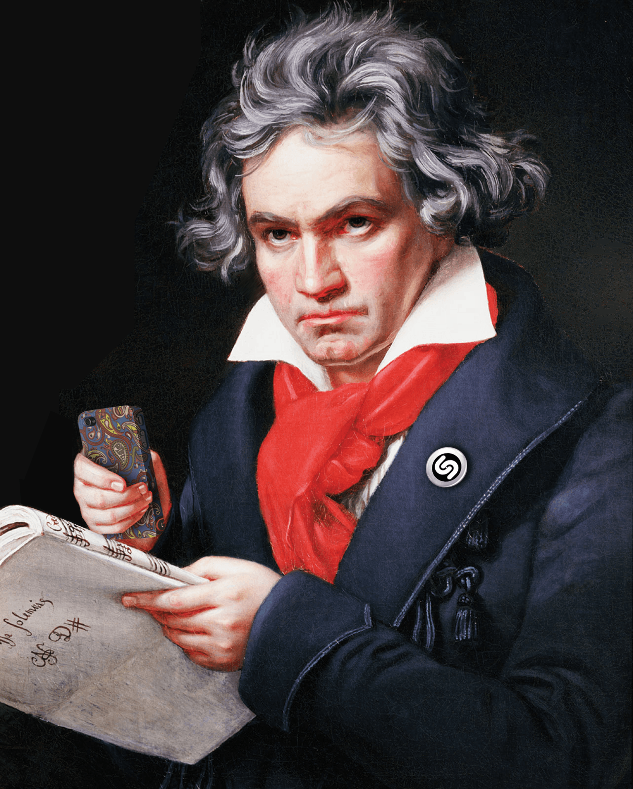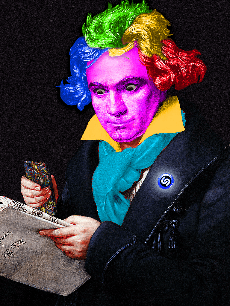 An image of Beethoven was cut into different pieces and “animated” (e.g. holding up the phone, with a glowing Shazam badge, and with different hairstyles and glasses).